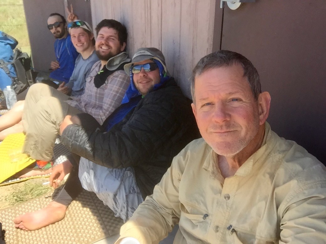 Here are the Hiker Trash in the shade. L-R: dude,Matt, Ryan, Pines and me.