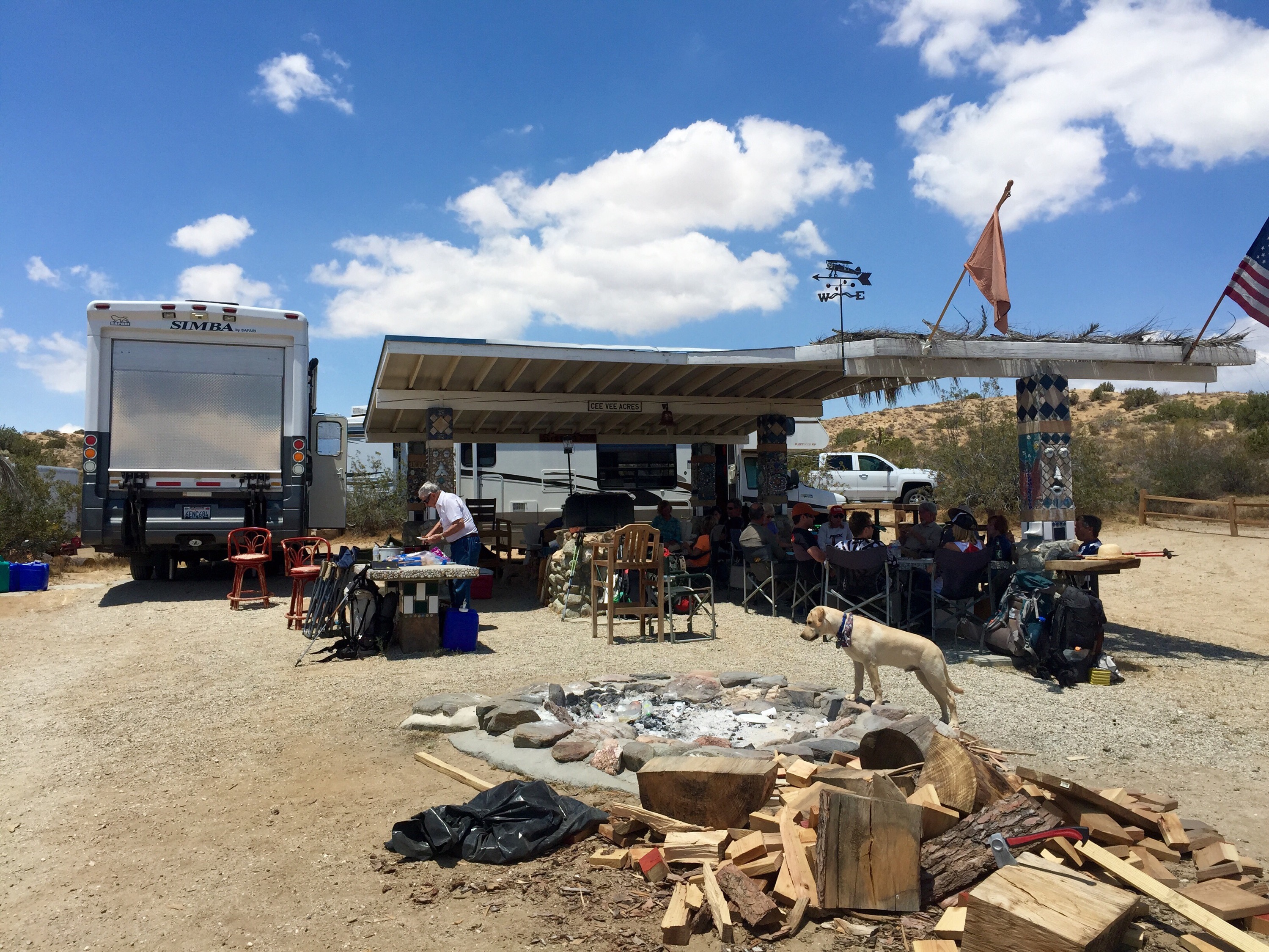 One wonderful surprise was at the 13 mile point we stumbled onto Trail Magic! This being the Memorial Day Weekend this group of family’s come out every year to ride dirt bikes and ATVs. They own a small plot with a permanent shade structure, tables, RV parking and fire ring just off the trail and they invite hikers over for free drinks and food every year.