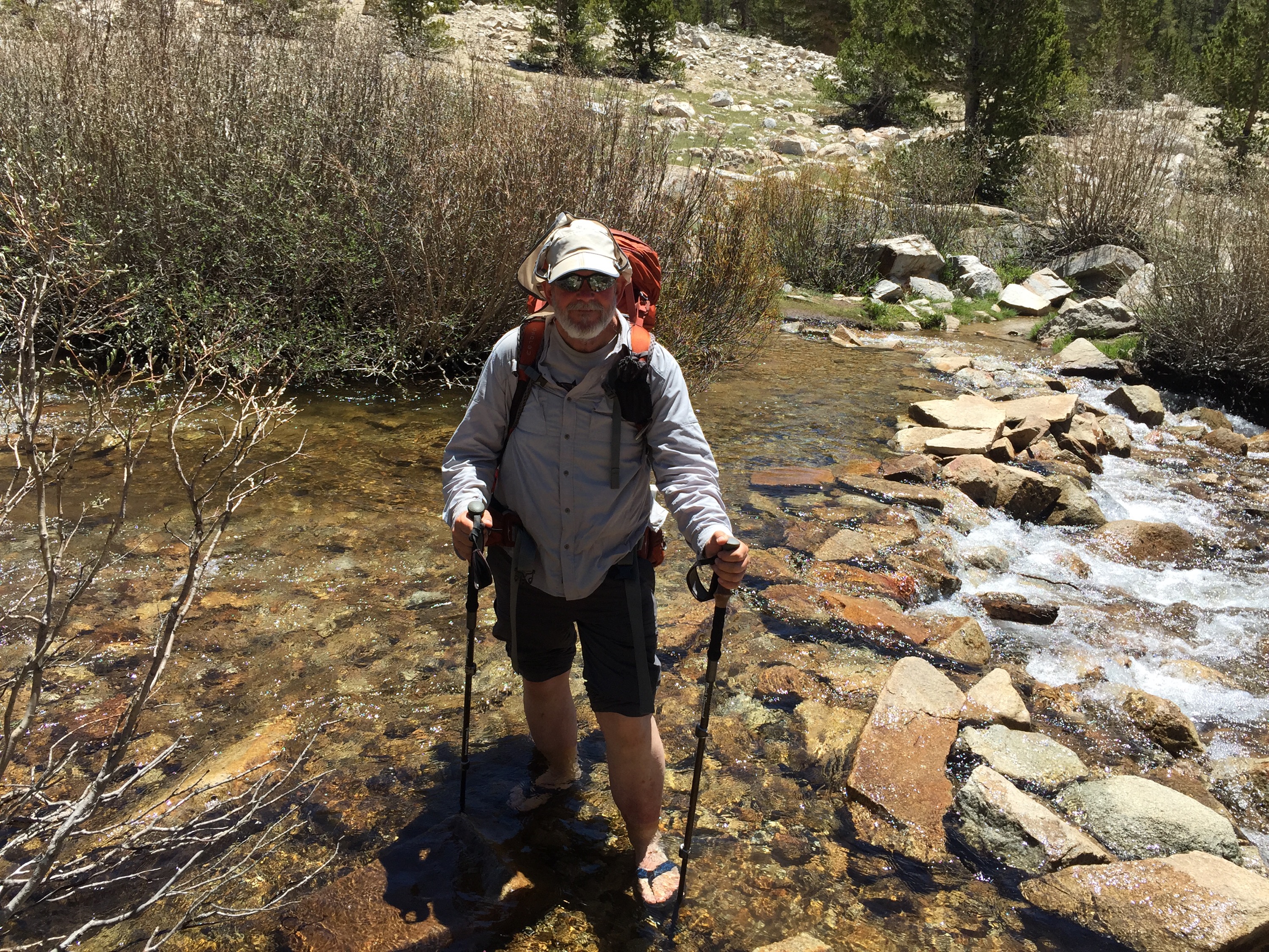 The day was made more interesting because we had to ford three streams!  Up to now the creeks I’ve crossed were shallow with rocks to hop. Not these snow fed streams; you have to wade across.