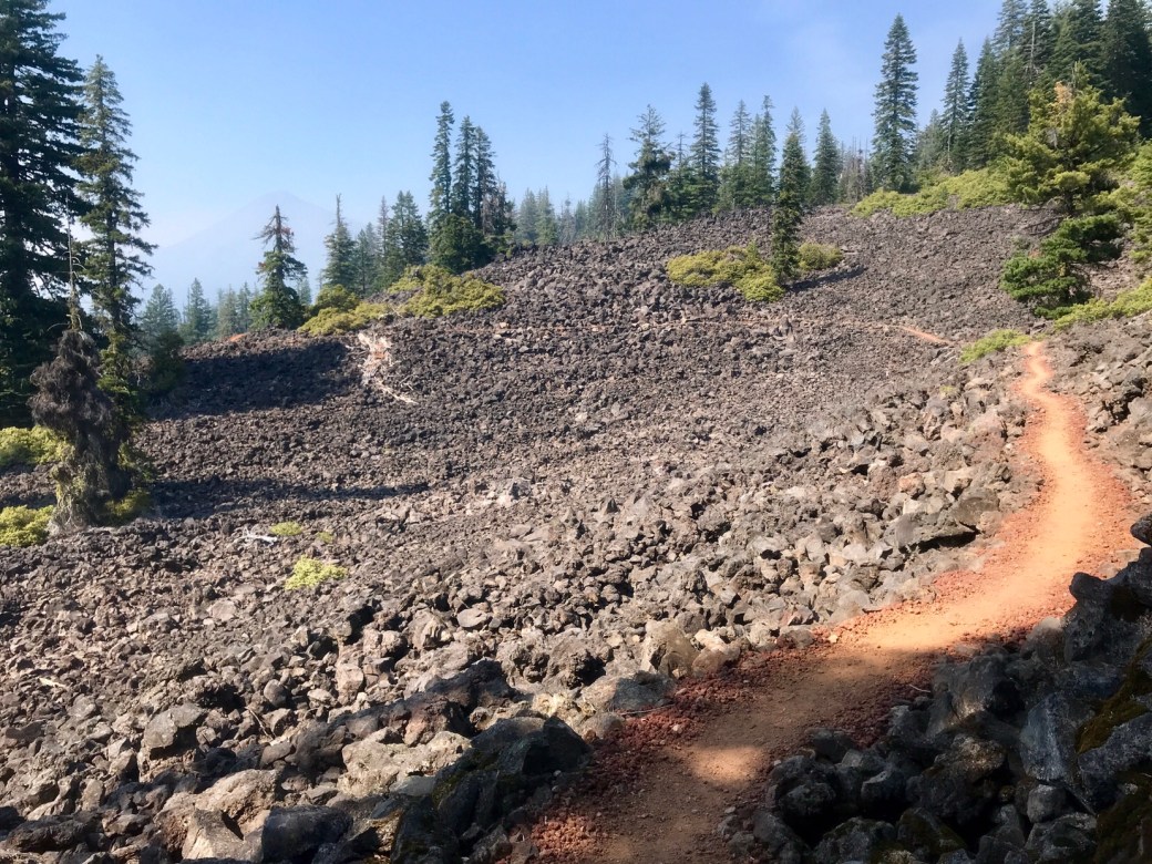 Miles and miles of them. Well over half of the 10 miles was in lava fields. And they weren’t smooth. Jagged rocks with red pebbles make for a slip and slide.