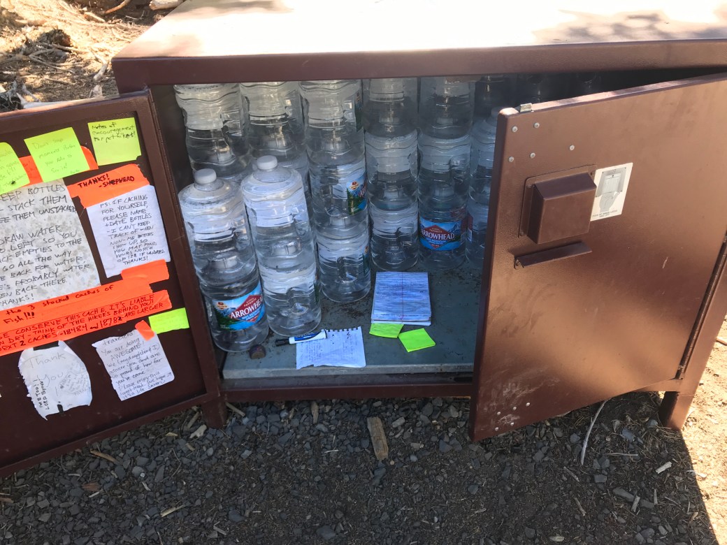 Leaving Crater Lake and it’s a dry section. I heard there was a water cache near the northern entrance, so I planned for it.