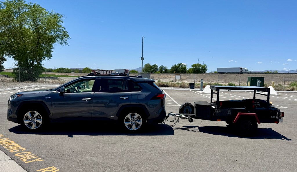 Traveling through Nevada and Idaho is stressful. The speed limits are 80 through there, and it’s tough on my little Rav4. I’m using a 2020 Rav4 Hybrid to tow a small 4×6 open trailer. The trailer is roughly 400lbs dry and maybe <600lbs loaded. The car’s rated to tow 1,000lbs and does as fantastic job of it, but doing 80 for hours on end? Stressful.