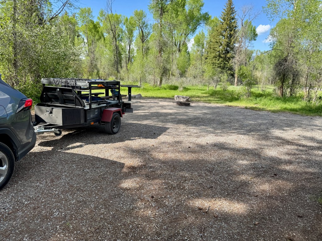I arrived at Falls Campground in Idaho, beside the Snake River. Right now it’s warm (80’s), humid, and it might rain. Weather app says the clouds should clear by 6pm, and I’m hoping they do. I really enjoyed not having a rainfly last night. The stars were spectacular!