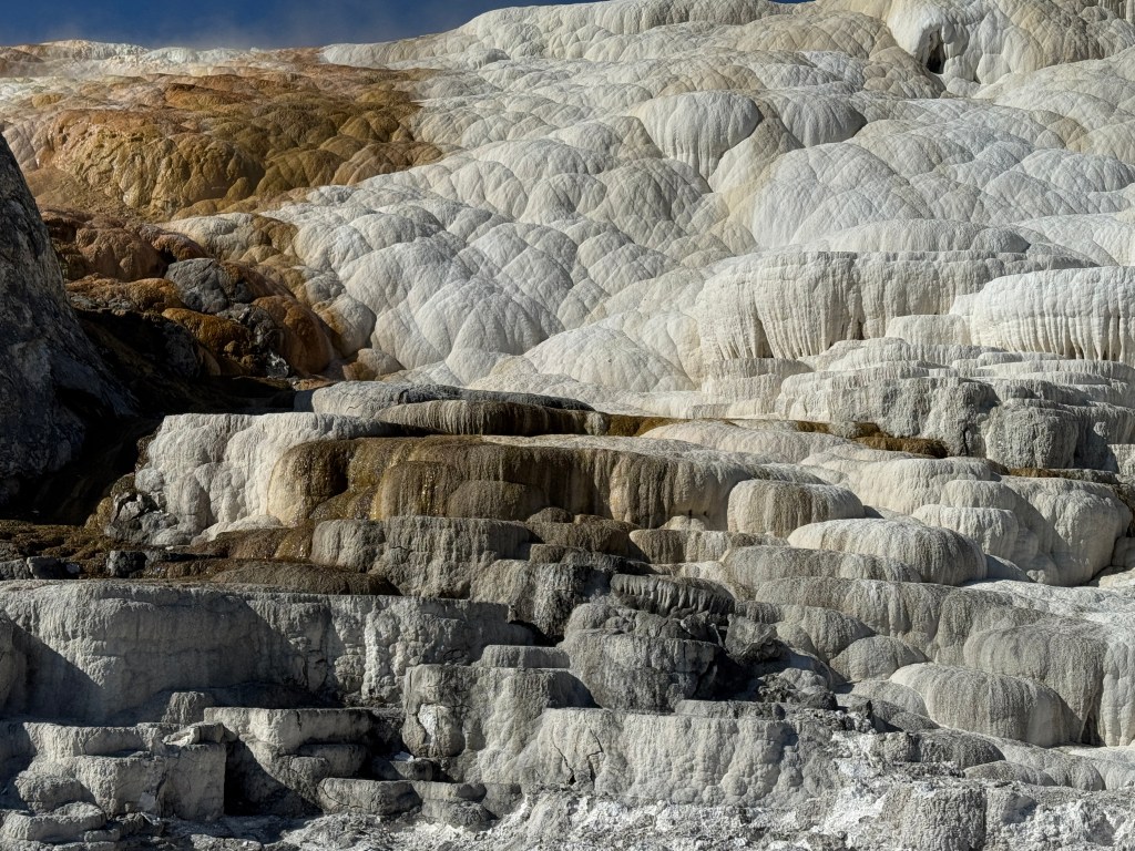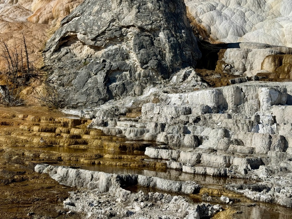 For my last day in the park, I headed north to Mammoth. Stopped by Mammoth Hot Springs Terrace. A whole hillside covered in calcium terraces.
