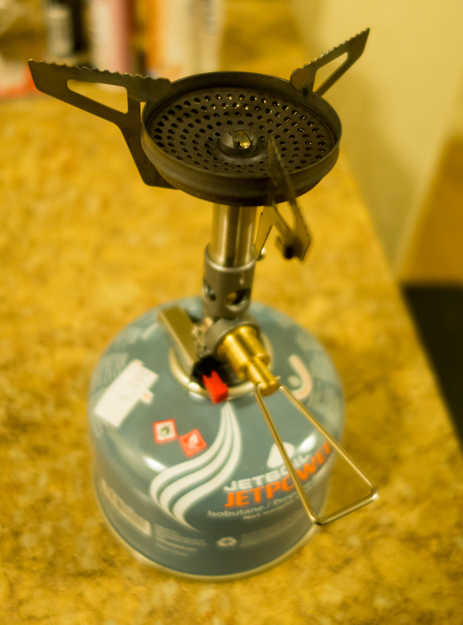 The simplicity and lightness of the Soto Windmaster won me over. It works with any 4oz or 8oz canister and does well without a windscreen in moderate conditions.